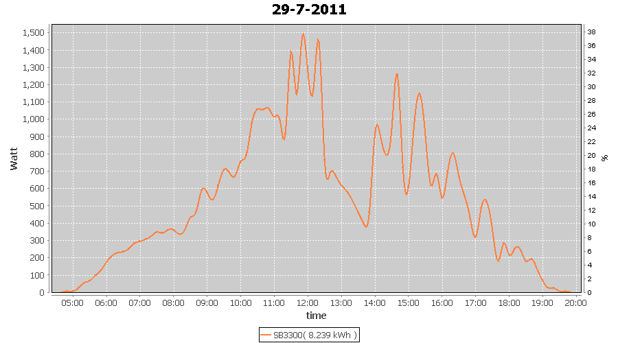 | 29-7-2011 | kWh | W/Wp | 8.239 | 3960 | 2.1 | 3.811 | $ 4.50 | 3.2 | |