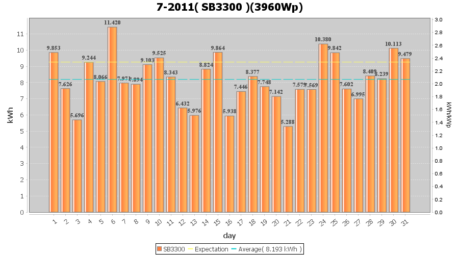 | 31-7-2011 | kWh | W/Wp | 9.479 | 3960 | 2.4 | 4.384 | $ 5.17 | 3.7 | |