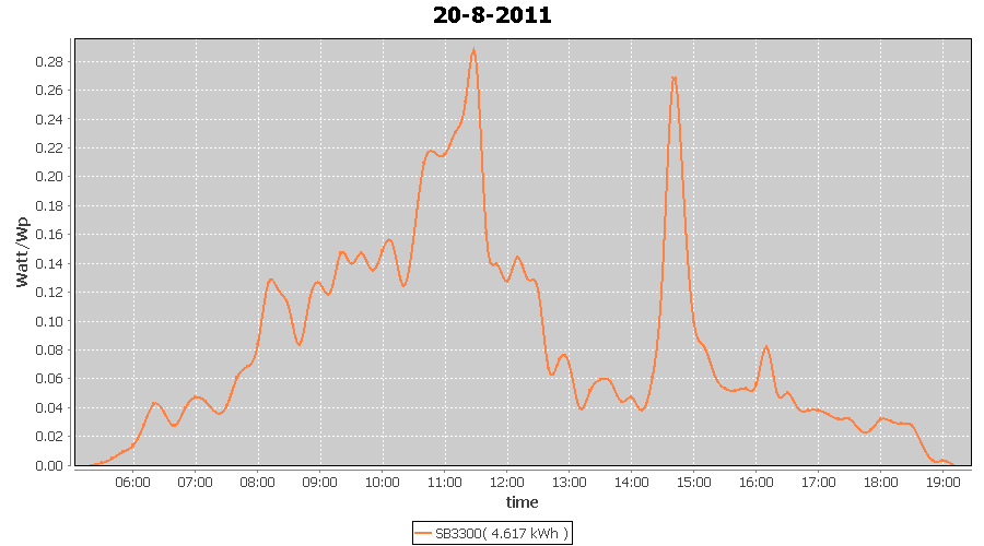| 27-8-2011 | kWh | W/Wp | 8.239 | 3960 | 2.1 | 3.811 | $ 4.50 | 4.0 | |