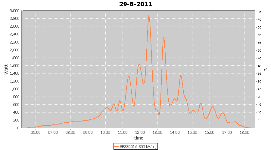| 29-8-2011 | kWh | W/Wp | 6.350 | 3960 | 1.6 | 2.937 | $ 3.47 | 3.0 | |