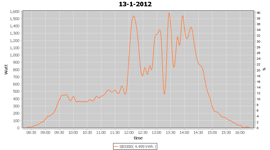 | 13-1-2012 | kWh | W/Wp | 4.499 | 3960 | 1.1 | 2.081 | $ 2.46 | 4.8 | |