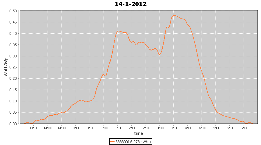 | 14-1-2012 | kWh | W/Wp | 6.273 | 3960 | 1.6 | 2.901 | $ 3.42 | 6.7 | |