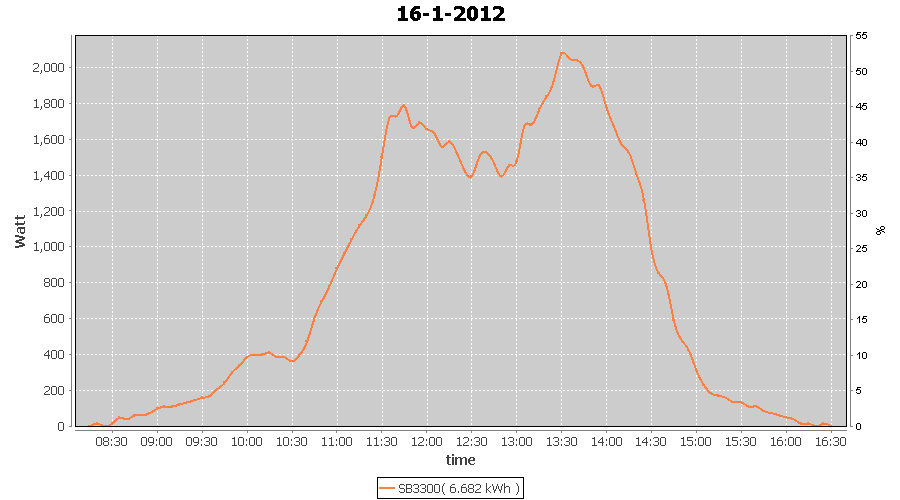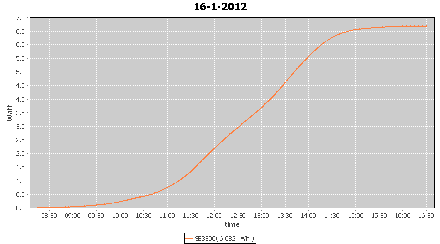 | 16-1-2012 | kWh | W/Wp | 6.682 | 3960 | 1.7 | 3.090 | $ 3.65 | 7.2 | |