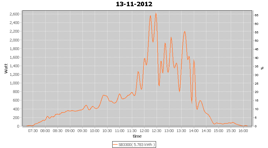 | 13-11-2012 | kWh | W/Wp | 5.783 | 3960 | 1.5 | 2.675 | $ 3.41 | 5.0 | |