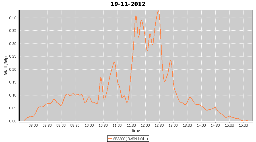| 19-11-2012 | kWh | W/Wp | 3.604 | 3960 | 0.9 | 1.667 | $ 2.12 | 3.1 | |