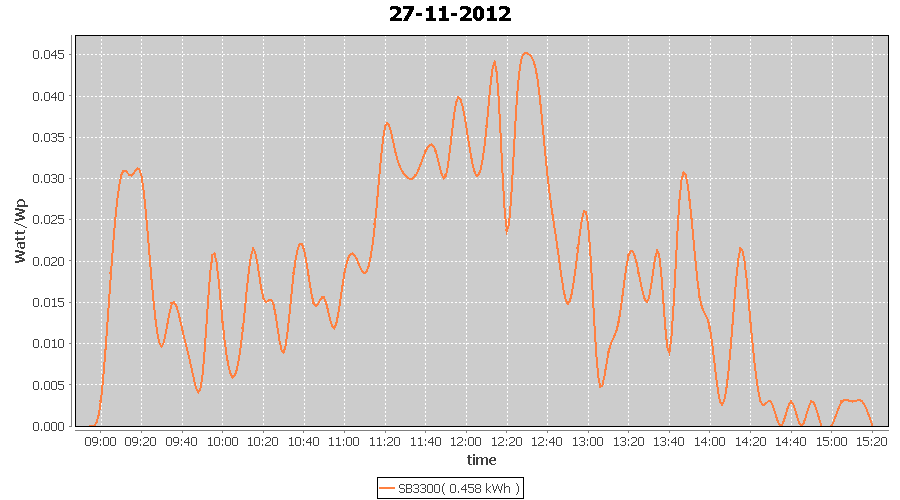 | 27-11-2012 | kWh | W/Wp | 0.458 | 3960 | 0.1 | 0.212 | $ 0.27 | 0.4 | |
