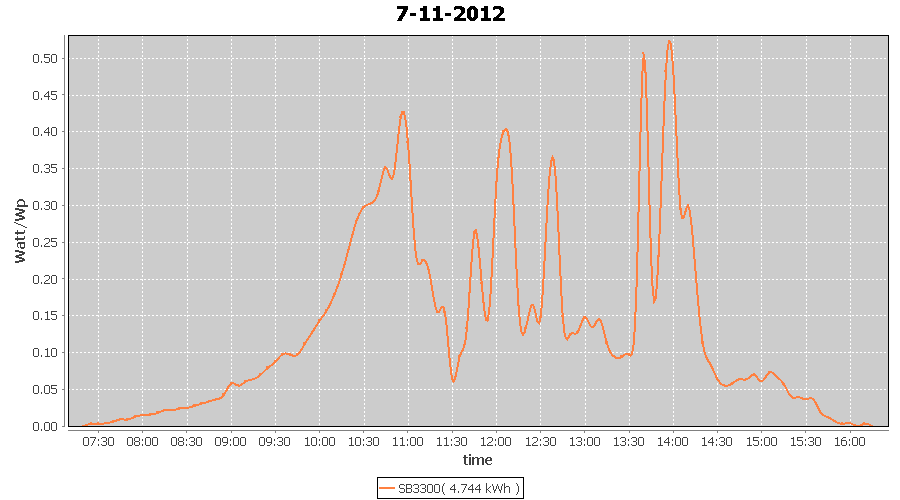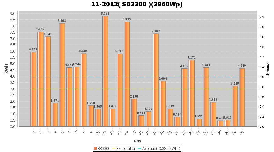 | 14-11-2012 | kWh | W/Wp | 8.335 | 3960 | 2.1 | 3.855 | $ 4.91 | 7.2 | |