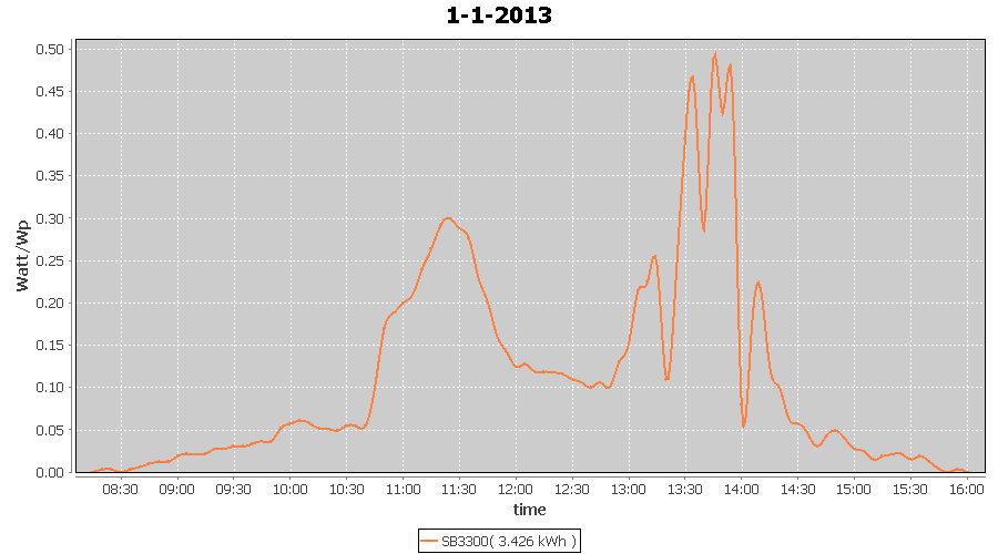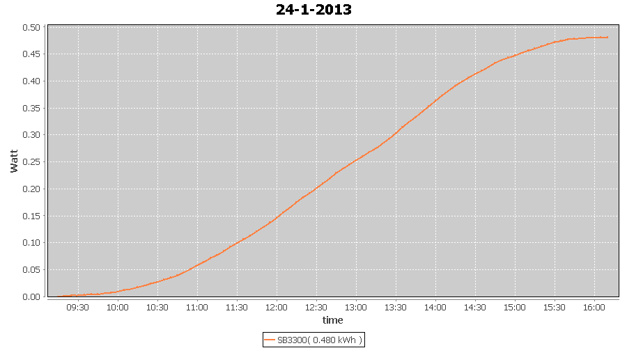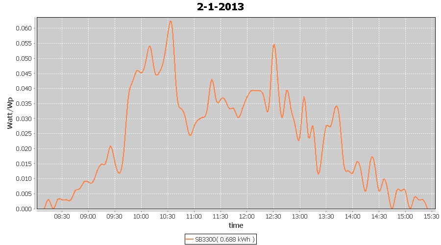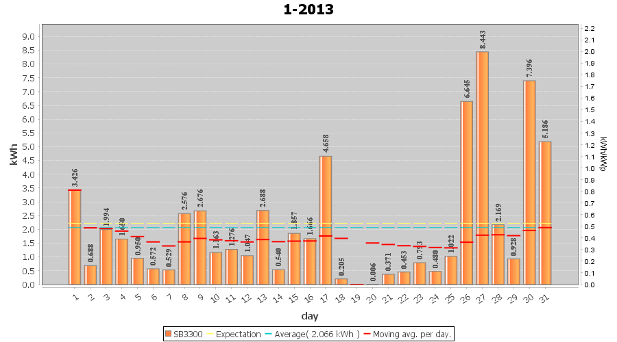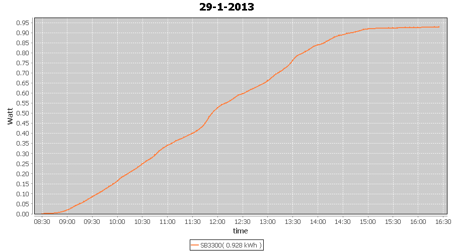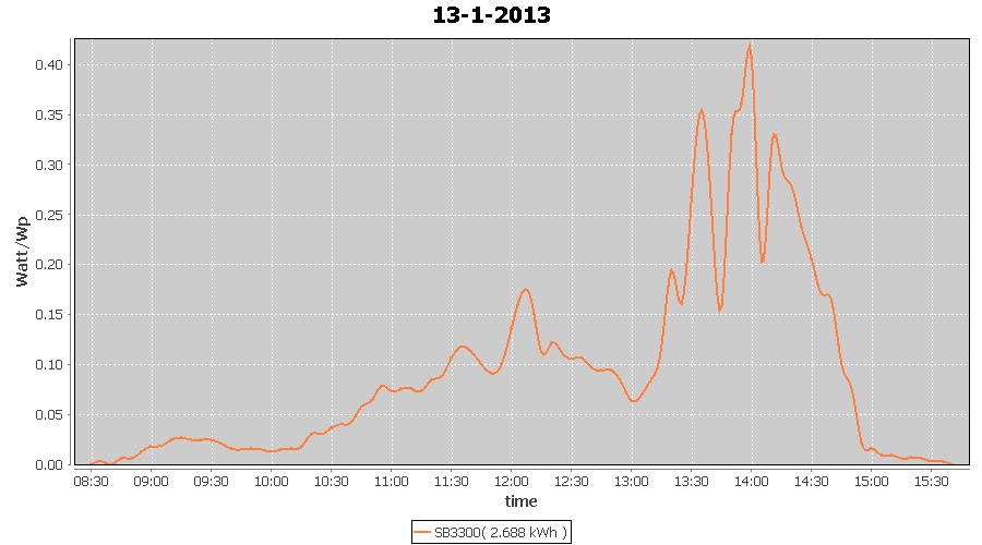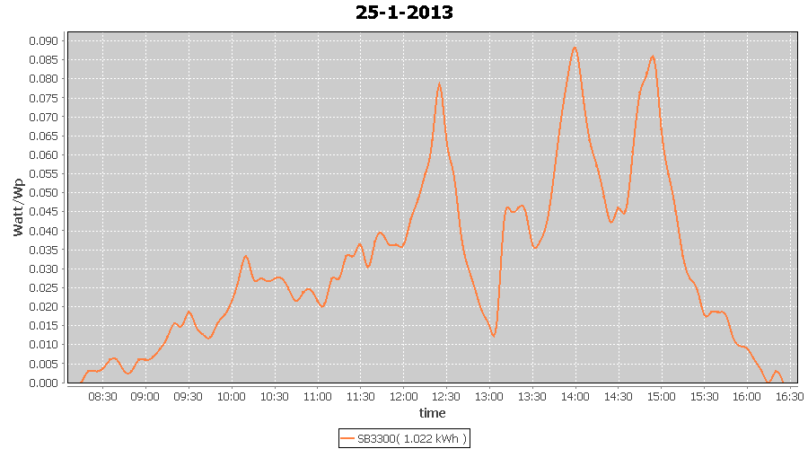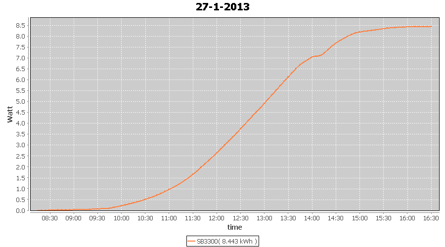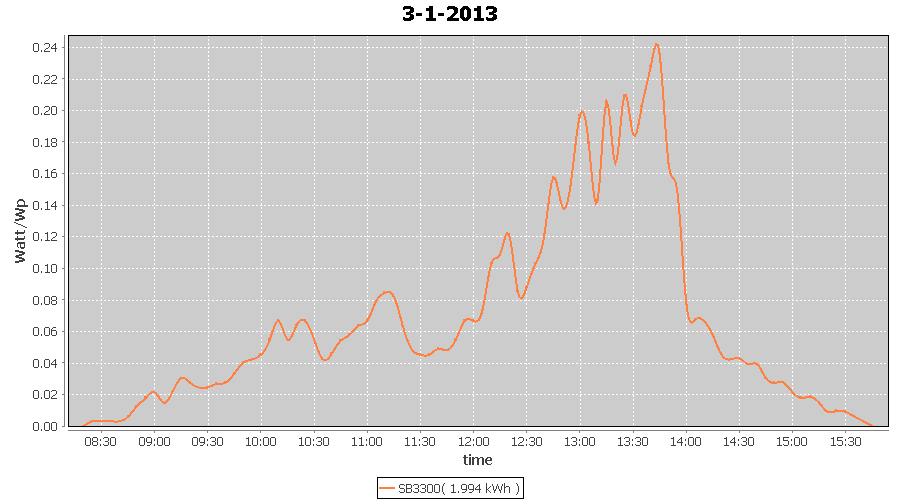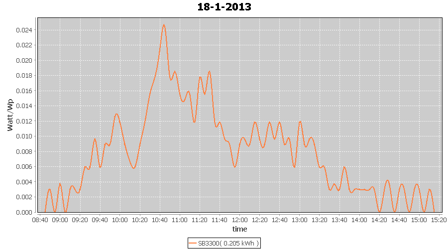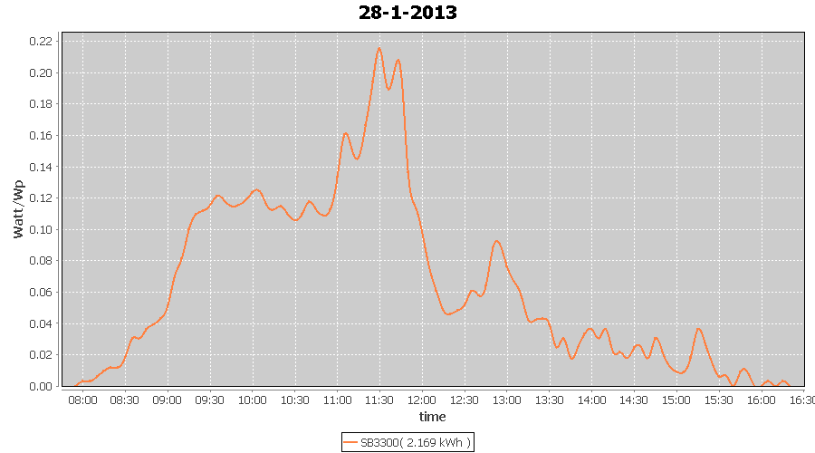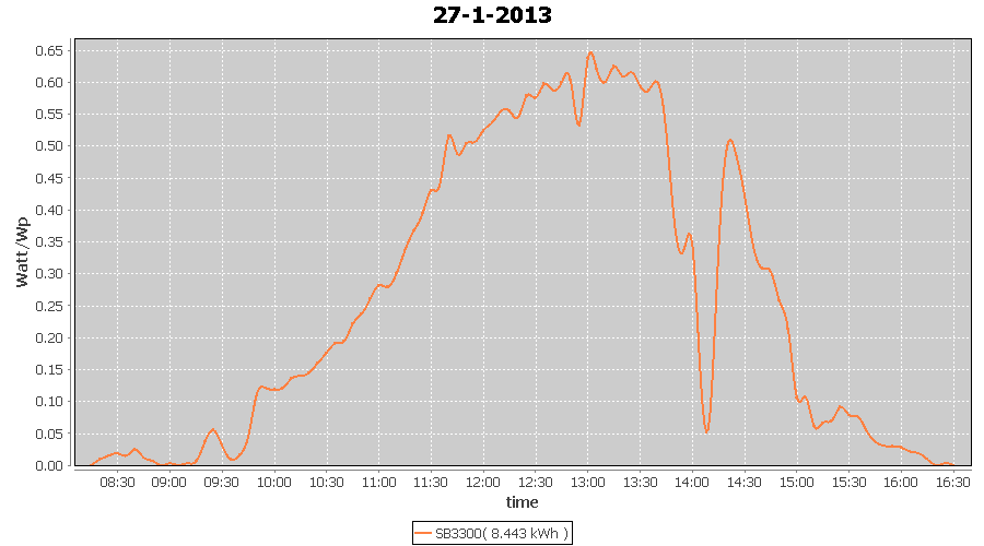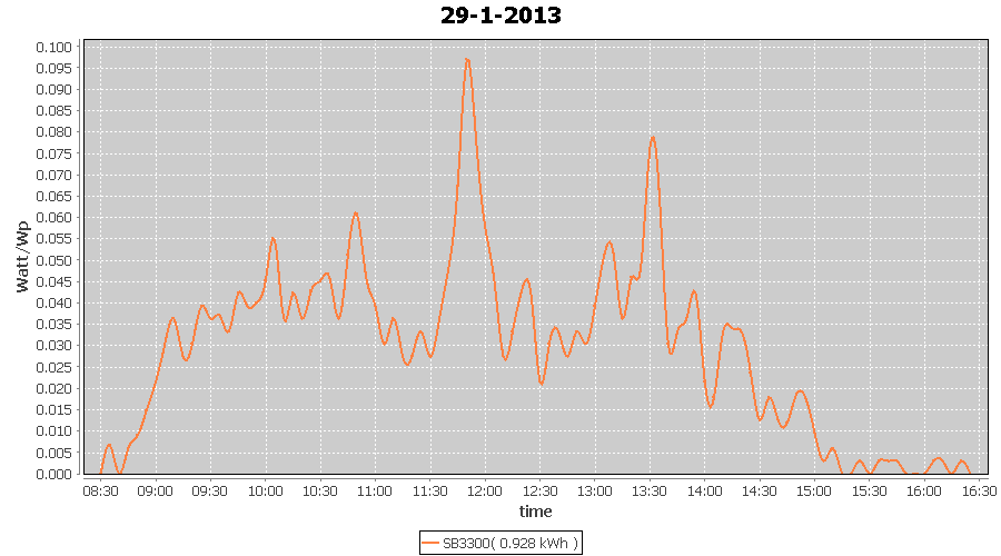 | 27-1-2013 | kWh | W/Wp | 8.443 | 3960 | 2.1 | 3.905 | $ 4.97 | 13.2 | |
