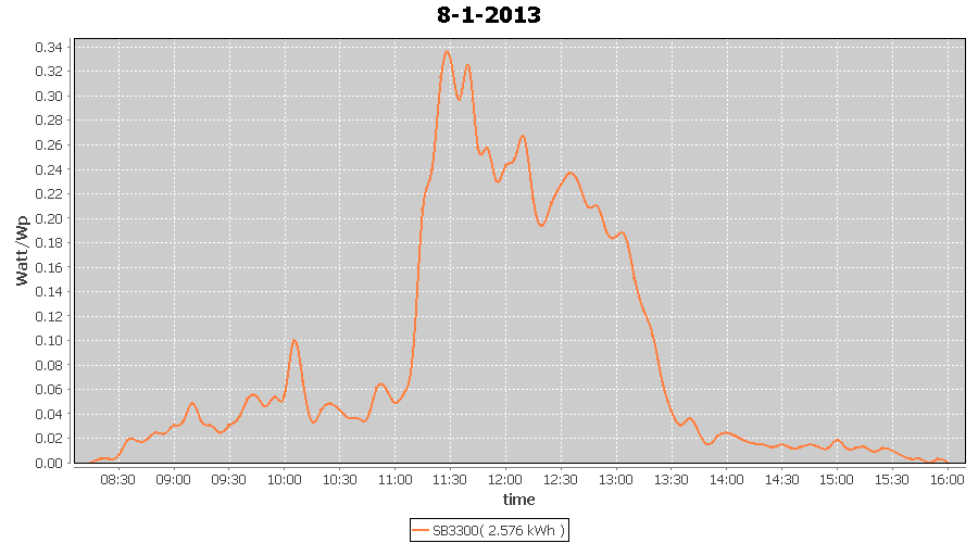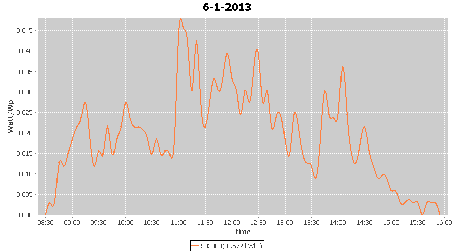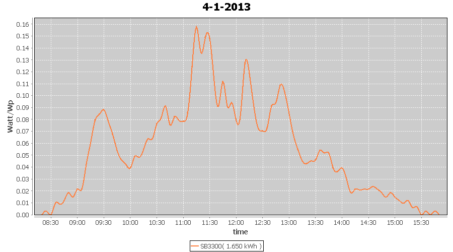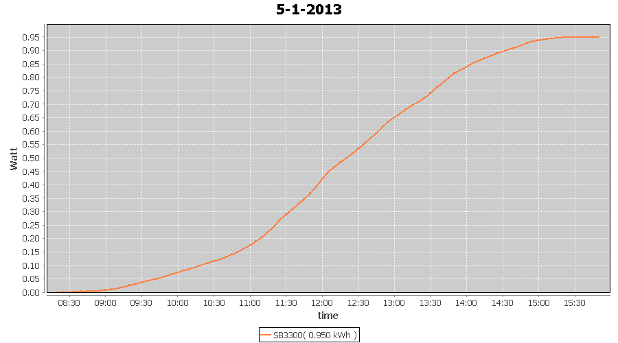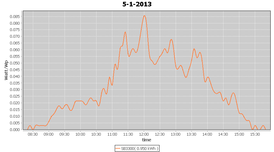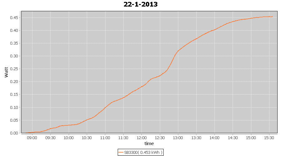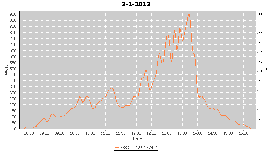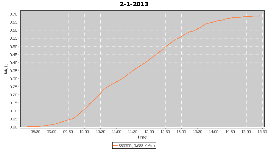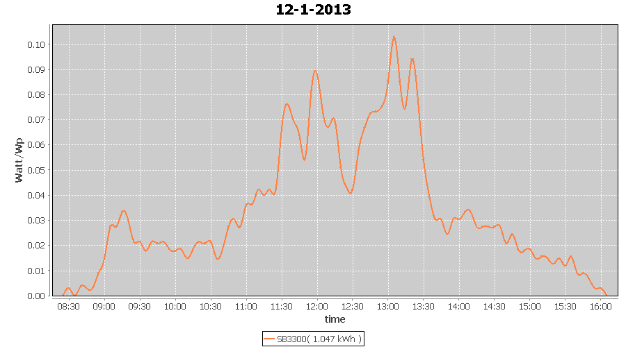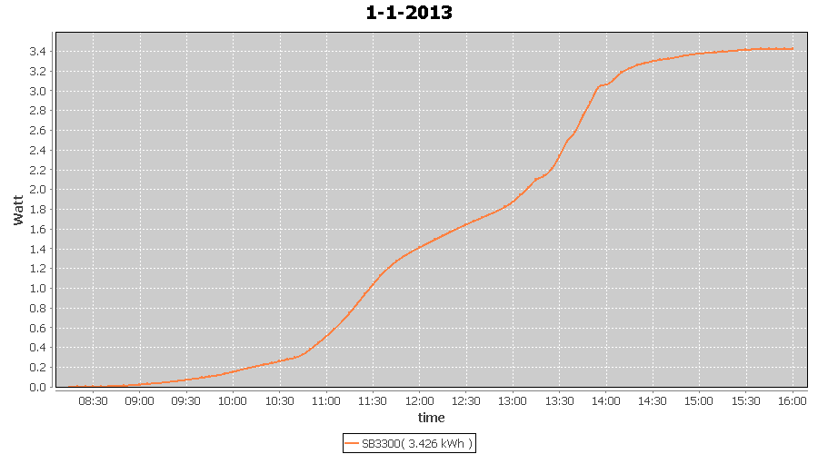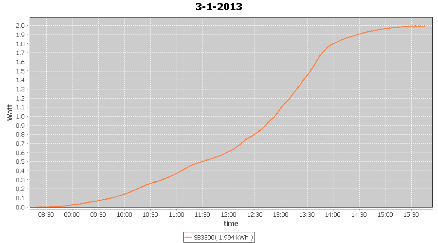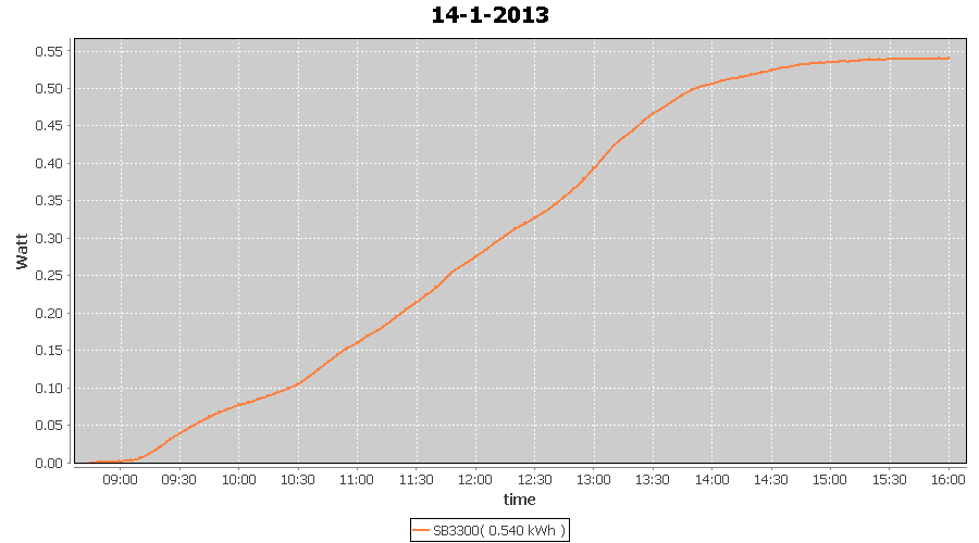 | 27-1-2013 | kWh | W/Wp | 8.443 | 3960 | 2.1 | 3.905 | $ 4.97 | 13.2 | |