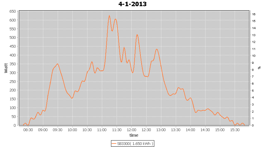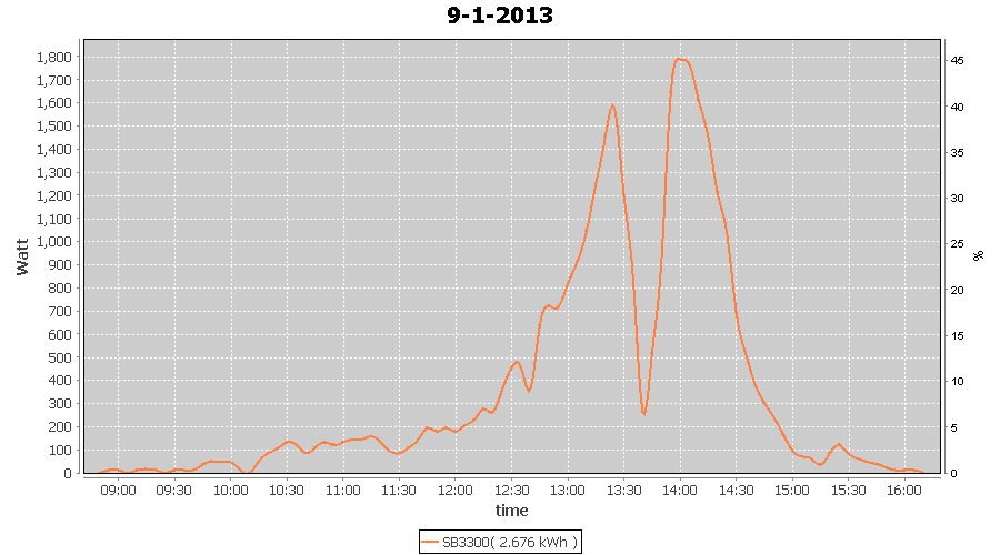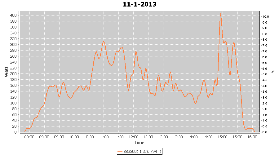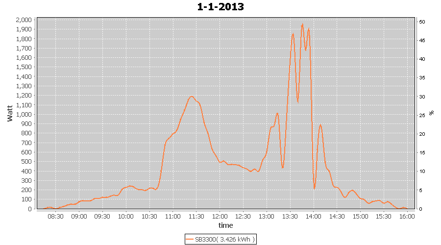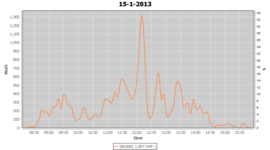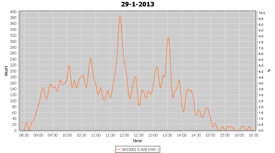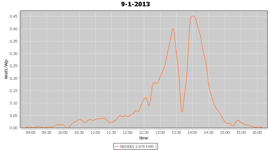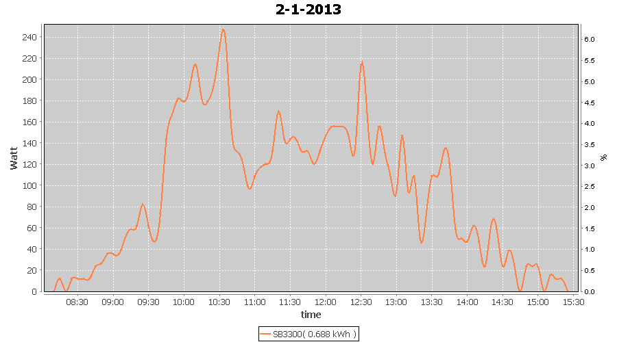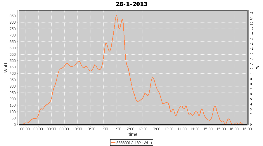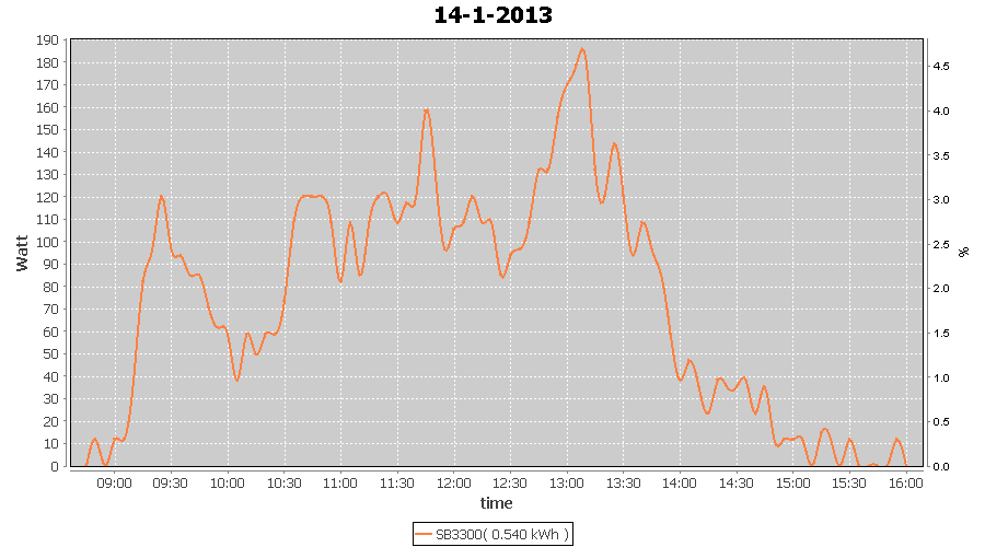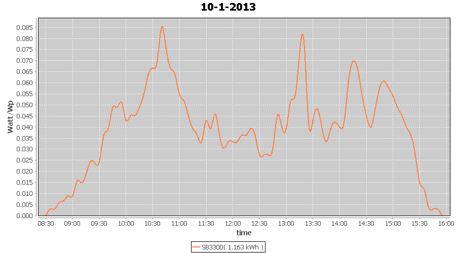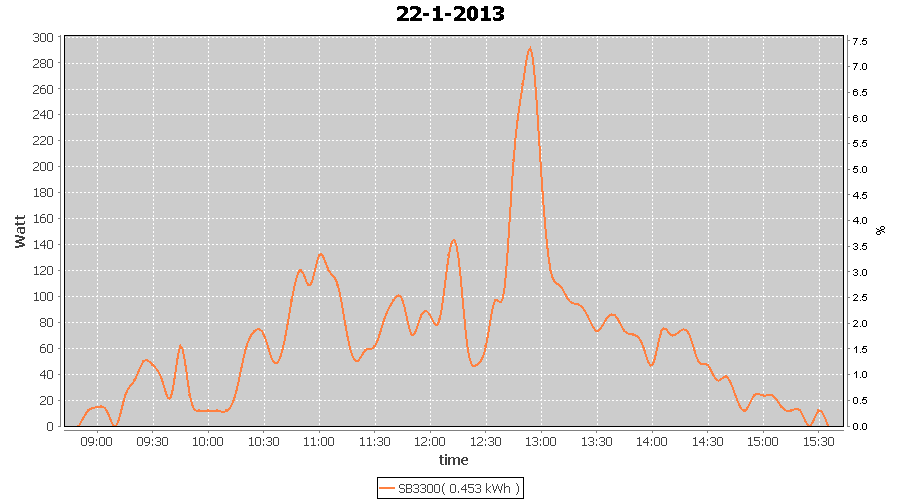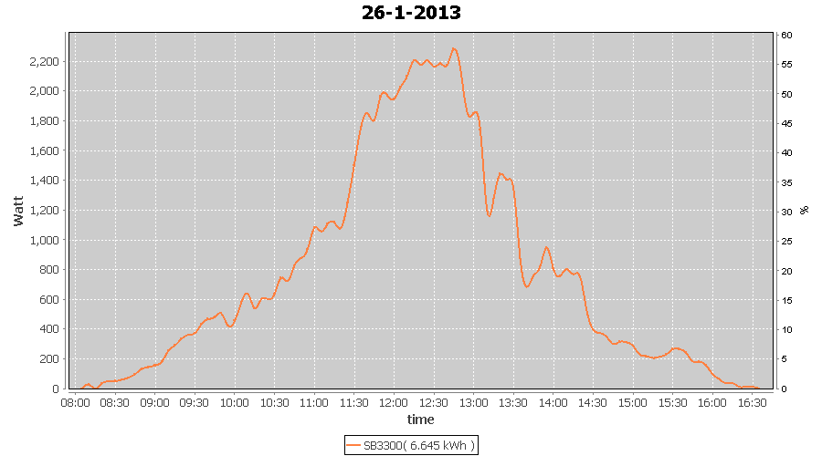 | 27-1-2013 | kWh | W/Wp | 8.443 | 3960 | 2.1 | 3.905 | $ 4.97 | 13.2 | |