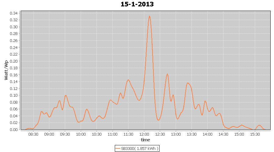| 15-1-2013 | kWh | W/Wp | 1.857 | 3960 | 0.5 | 0.859 | $ 1.09 | 2.9 | |