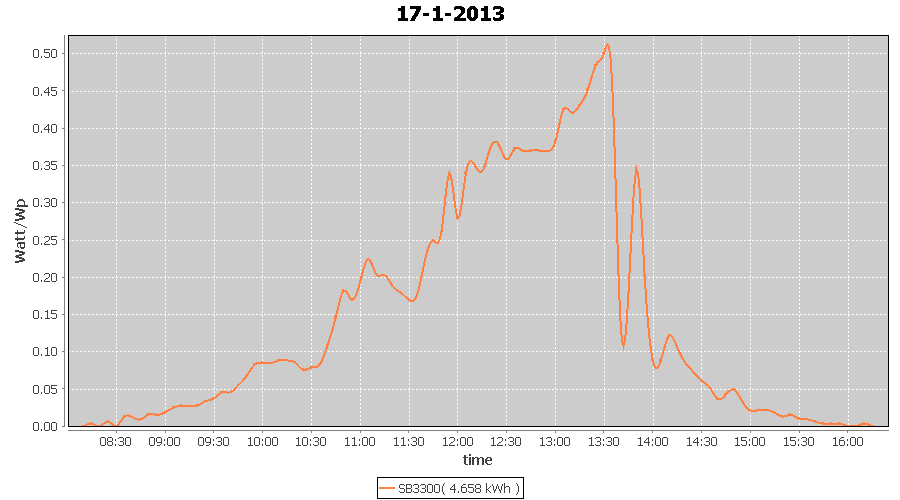 | 17-1-2013 | kWh | W/Wp | 4.658 | 3960 | 1.2 | 2.154 | $ 2.75 | 7.3 | |