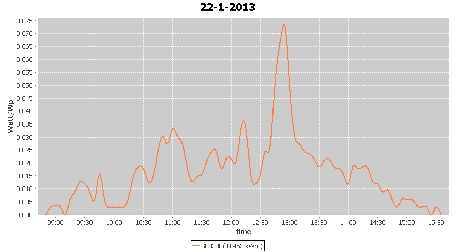 | 22-1-2013 | kWh | W/Wp | 0.453 | 3960 | 0.1 | 0.210 | $ 0.27 | 0.7 | |