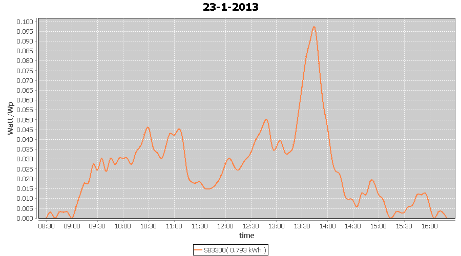 | 23-1-2013 | kWh | W/Wp | 0.793 | 3960 | 0.2 | 0.367 | $ 0.47 | 1.2 | |