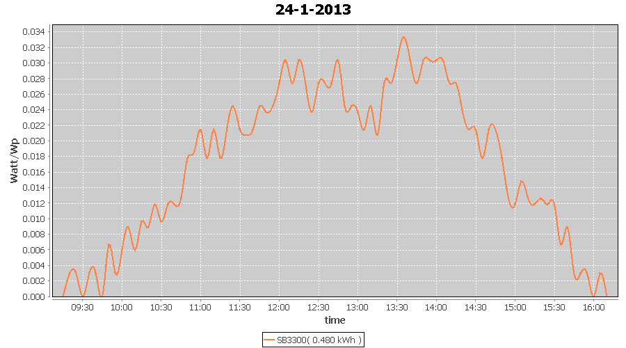 | 24-1-2013 | kWh | W/Wp | 0.480 | 3960 | 0.1 | 0.222 | $ 0.28 | 0.7 | |