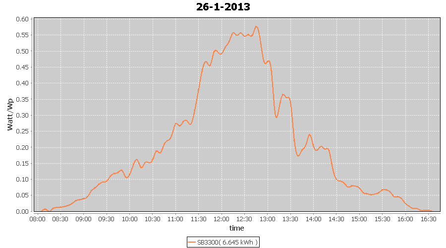 | 26-1-2013 | kWh | W/Wp | 6.645 | 3960 | 1.7 | 3.073 | $ 3.92 | 10.4 | |