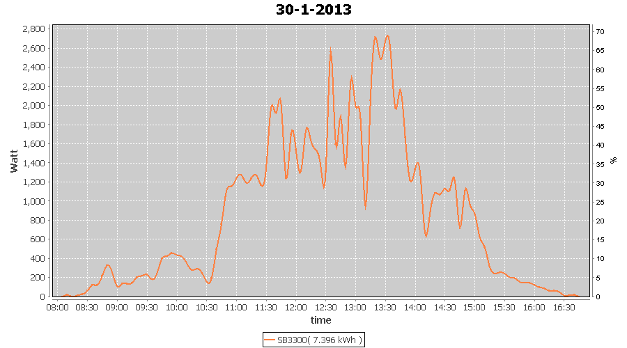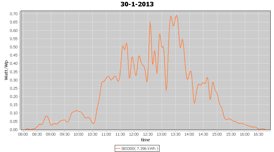 | 30-1-2013 | kWh | W/Wp | 7.396 | 3960 | 1.9 | 3.421 | $ 4.36 | 11.5 | |