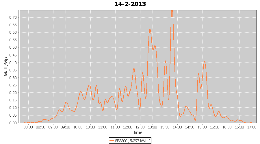 | 14-2-2013 | kWh | W/Wp | 5.297 | 3960 | 1.3 | 2.450 | $ 3.12 | 4.4 | |