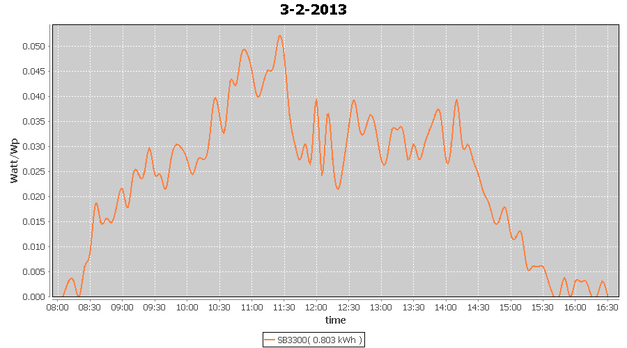 | 13-2-2013 | kWh | W/Wp | 3.852 | 3960 | 1.0 | 1.782 | $ 2.27 | 3.2 | |
