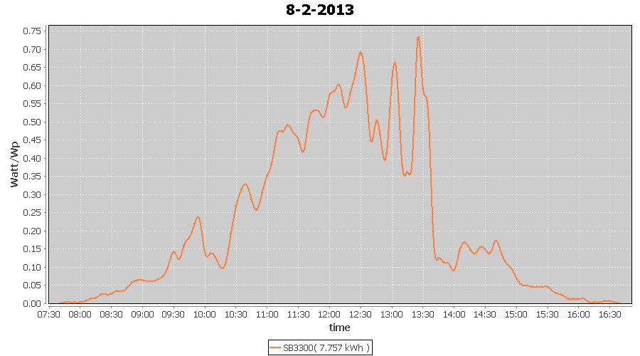 | 8-2-2013 | kWh | W/Wp | 7.757 | 3960 | 2.0 | 3.588 | $ 4.57 | 6.4 | |