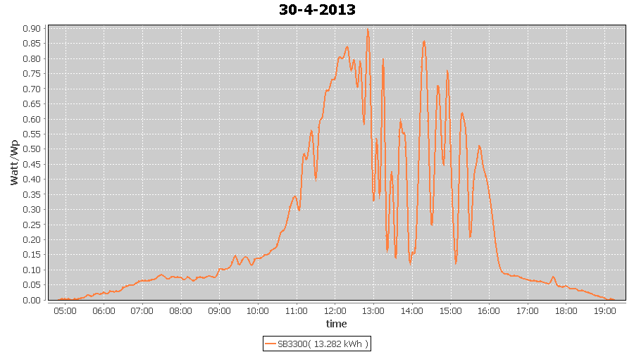 | 30-4-2013 | kWh | W/Wp | 13.282 | 3960 | 3.4 | 6.143 | $ 8.27 | 4.1 | |