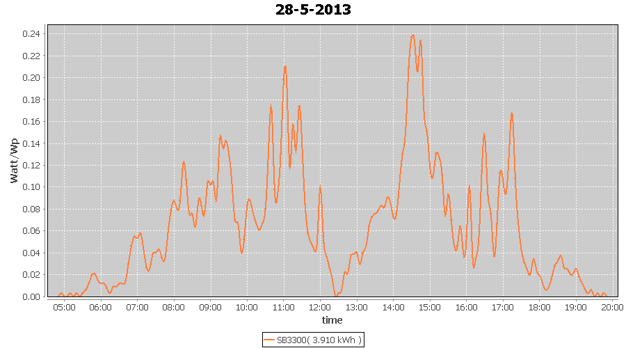 | 28-5-2013 | kWh | W/Wp | 3.910 | 3960 | 1.0 | 1.808 | $ 2.43 | 1.4 | |