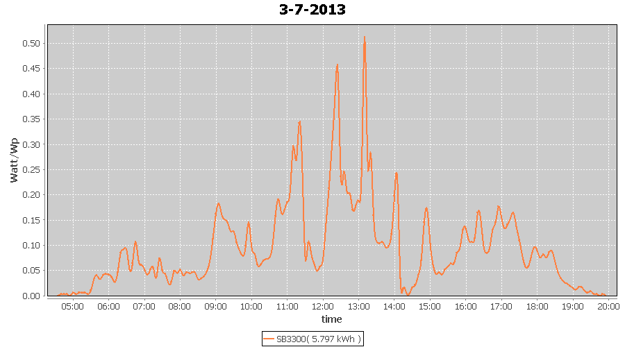 | 14-7-2013 | kWh | W/Wp | 12.029 | 3960 | 3.0 | 5.563 | $ 7.49 | 3.8 | |