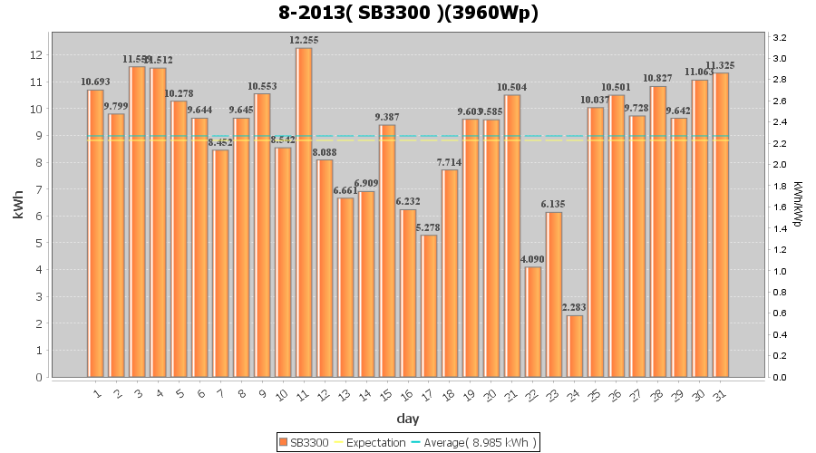 | 31-8-2013 | kWh | W/Wp | 11.325 | 3960 | 2.9 | 5.238 | $ 7.05 | 4.1 | |