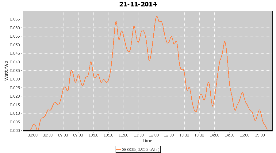 | 21-11-2014 | kWh | W/Wp | 0.955 | 3960 | 0.2 | 0.442 | $ 0.61 | 1.0 | |