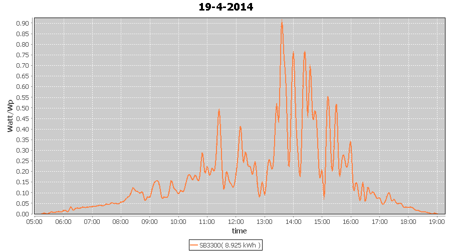 | 19-4-2014 | kWh | W/Wp | 8.925 | 3960 | 2.3 | 4.128 | $ 5.67 | 3.1 | |