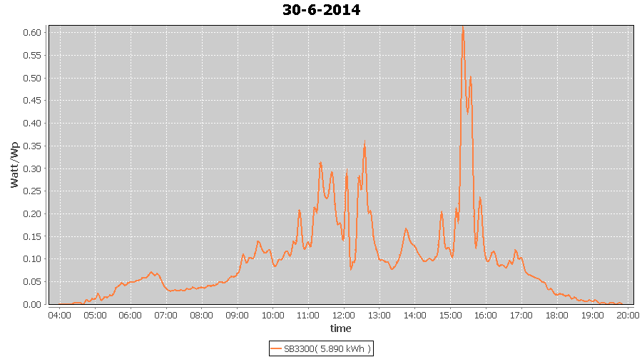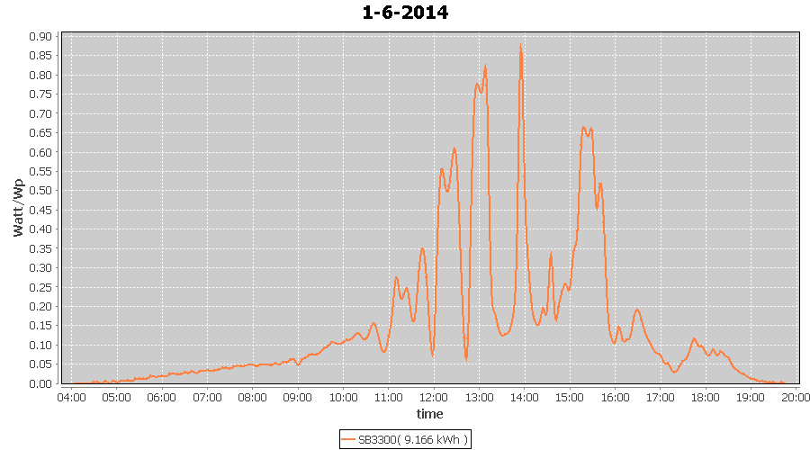 | 19-6-2014 | kWh | W/Wp | 4.397 | 3960 | 1.1 | 2.034 | $ 2.80 | 1.5 | |