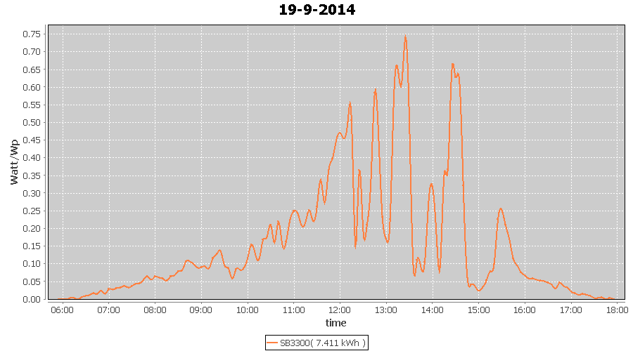 | 19-9-2014 | kWh | W/Wp | 7.411 | 3960 | 1.9 | 3.428 | $ 4.71 | 3.6 | |