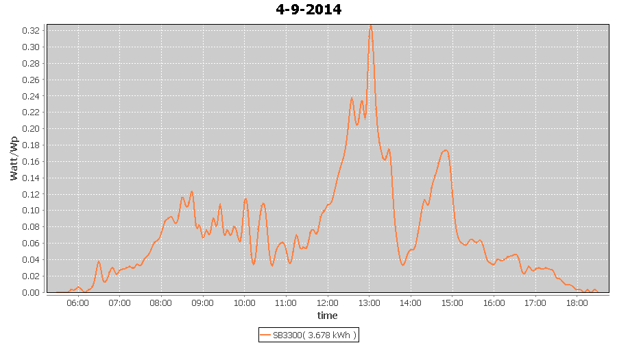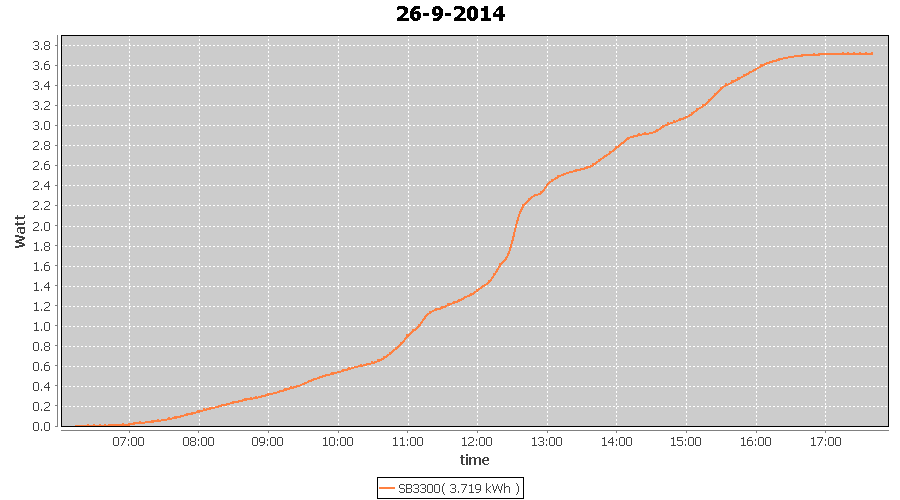 | 26-9-2014 | kWh | W/Wp | 3.719 | 3960 | 0.9 | 1.720 | $ 2.36 | 1.8 | |