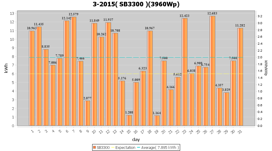 | 23-3-2015 | kWh | W/Wp | 12.423 | 3960 | 3.1 | 5.746 | $ 7.90 | 5.1 | |