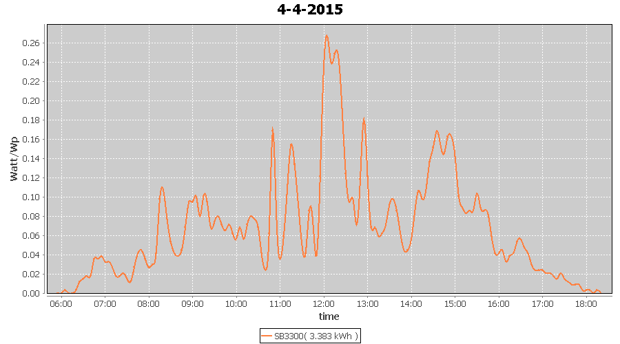 | 18-4-2015 | kWh | W/Wp | 15.812 | 3960 | 4.0 | 7.313 | $ 10.18 | 4.6 | |