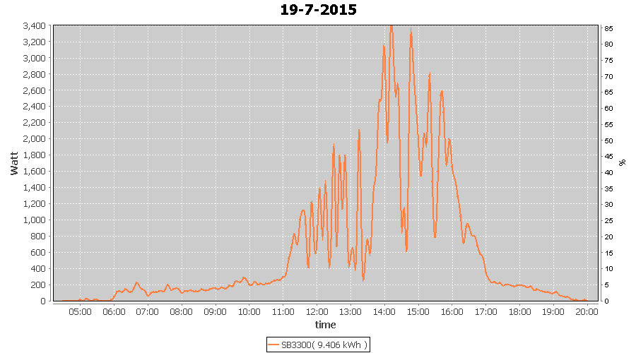| 19-7-2015 | kWh | W/Wp | 9.406 | 3960 | 2.4 | 4.350 | £ 6.05 | 3.4 | |