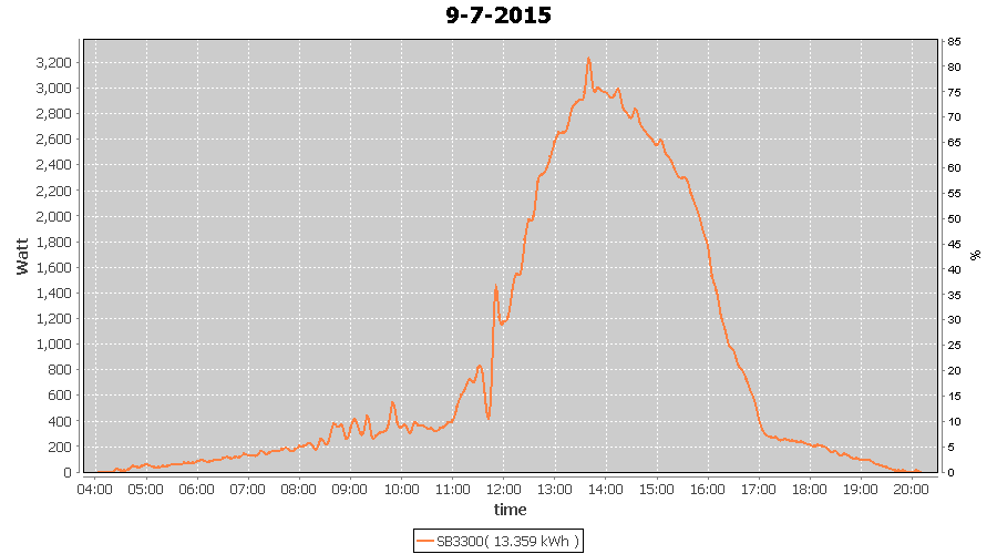 | 9-7-2015 | kWh | W/Wp | 13.359 | 3960 | 3.4 | 6.179 | £ 8.60 | 4.9 | |