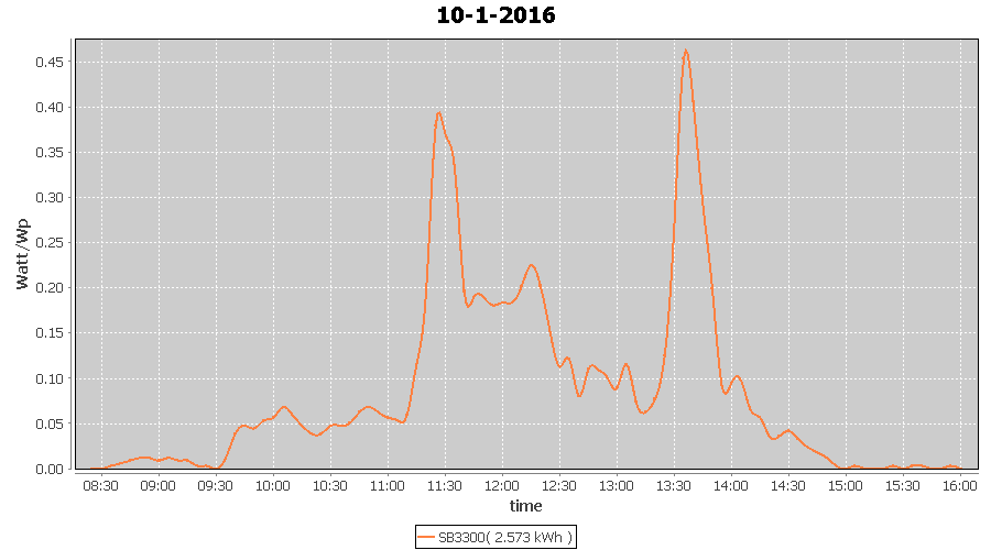 | 10-1-2016 | kWh | W/Wp | 2.573 | 3960 | 0.6 | 1.190 | £ 1.66 | 3.1 | |