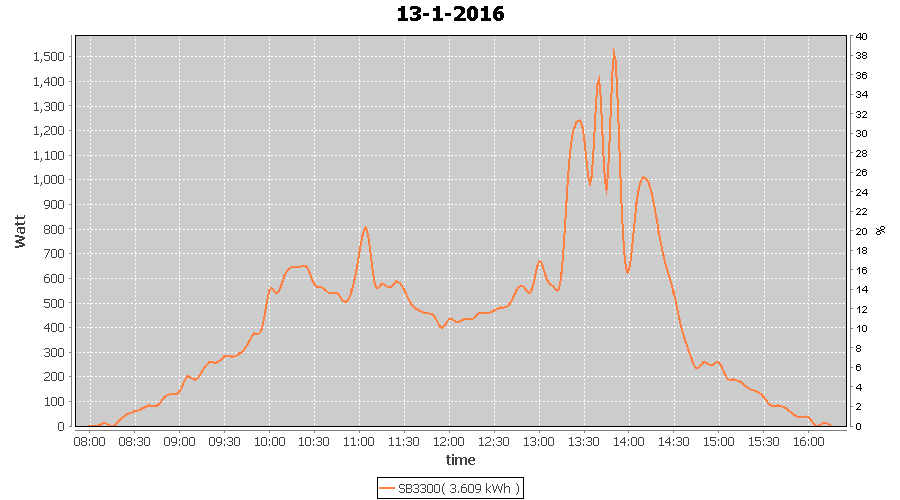 | 13-1-2016 | kWh | W/Wp | 3.609 | 3960 | 0.9 | 1.669 | £ 2.32 | 4.3 | |
