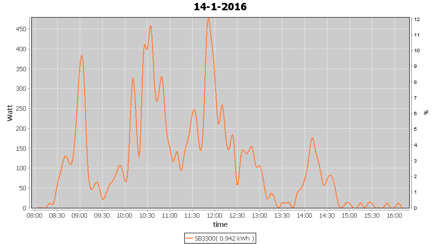 | 14-1-2016 | kWh | W/Wp | 0.942 | 3960 | 0.2 | 0.436 | £ 0.61 | 1.1 | |