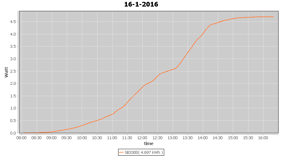 | 16-1-2016 | kWh | W/Wp | 4.697 | 3960 | 1.2 | 2.172 | £ 3.02 | 5.6 | |