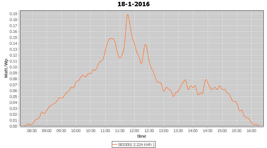 | 18-1-2016 | kWh | W/Wp | 2.224 | 3960 | 0.6 | 1.029 | £ 1.43 | 2.7 | |