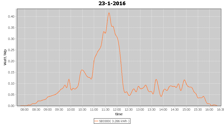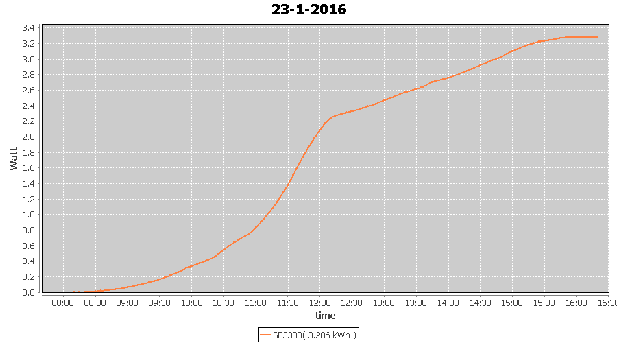 | 23-1-2016 | kWh | W/Wp | 3.286 | 3960 | 0.8 | 1.520 | £ 2.11 | 3.9 | |