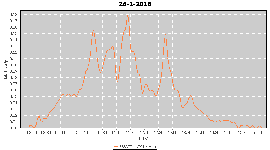 | 26-1-2016 | kWh | W/Wp | 1.791 | 3960 | 0.5 | 0.828 | £ 1.15 | 2.1 | |
