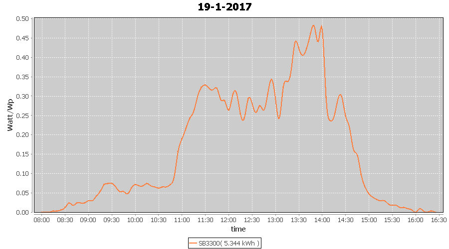 | 19-1-2017 | kWh | W/Wp | 5.344 | 3960 | 1.3 | 2.472 | £ 3.47 | 6.3 | |
