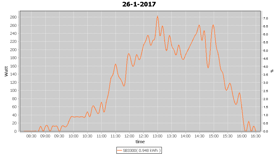 | 26-1-2017 | kWh | W/Wp | 0.948 | 3960 | 0.2 | 0.438 | £ 0.62 | 1.1 | |