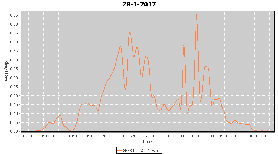 | 28-1-2017 | kWh | W/Wp | 5.202 | 3960 | 1.3 | 2.406 | £ 3.38 | 6.1 | |