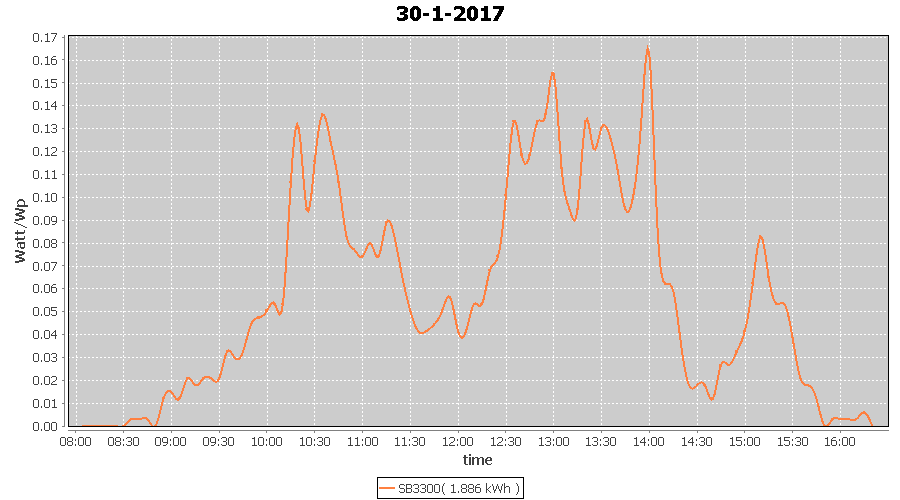 | 30-1-2017 | kWh | W/Wp | 1.886 | 3960 | 0.5 | 0.872 | £ 1.23 | 2.2 | |
