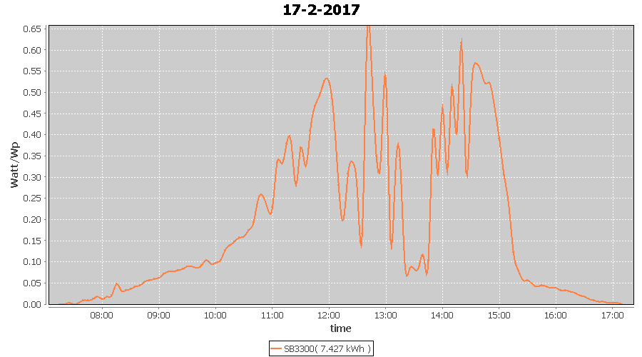 | 17-2-2017 | kWh | W/Wp | 7.427 | 3960 | 1.9 | 3.435 | £ 4.83 | 7.0 | |