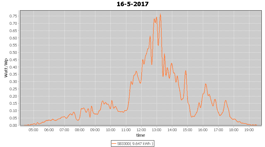 | 16-5-2017 | kWh | W/Wp | 9.647 | 3960 | 2.4 | 4.462 | £ 0.00 | 3.9 | |